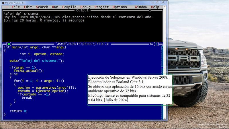 Imágen 4: Vista del IDE Borland C++ 3.1 con el código fuente reloj.c